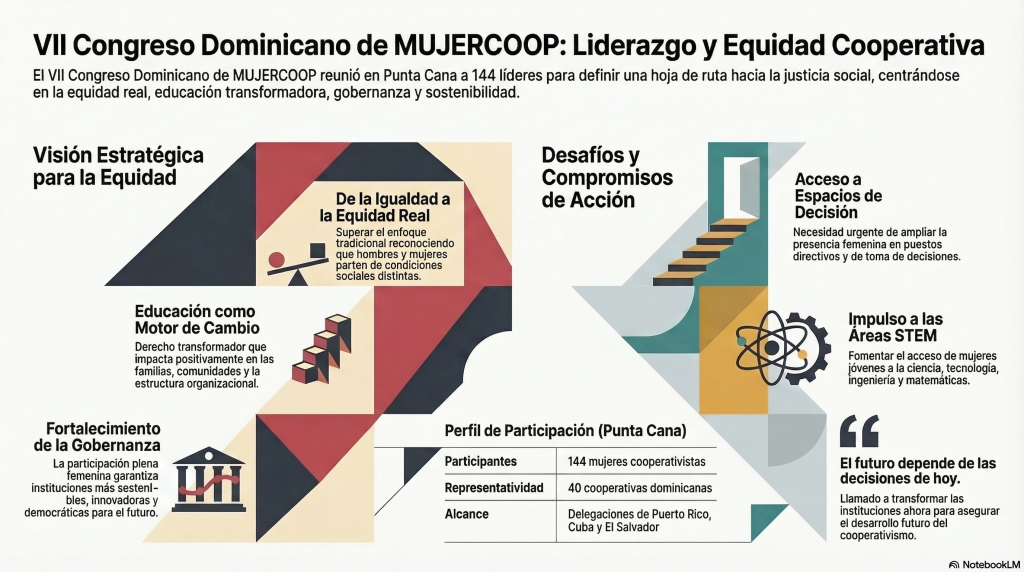Punta Cana, 08 de marzo de 2026- En el marco del Día Internacional de la Mujer, el movimiento cooperativo celebró en Punta Cana el VII Congreso MujerCoop, un espacio de reflexión y construcción colectiva donde se abordaron los principales desafíos y oportunidades para el liderazgo femenino dentro del sector.
